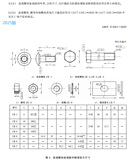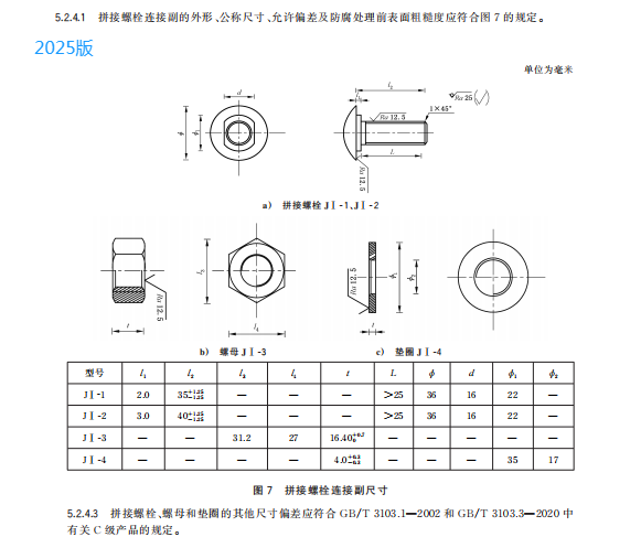 e) 更改了拼接螺栓连接副和连接螺栓连接副的用途、规格、公称尺寸及允许偏差(见 4.3.4、4.3.5、5.2.4.1、5.2.4.3、5.2.5.1 和 5.2.5.3,2015 年版的 3.2.5、3.2.6、4.2.4.1 和 4.2.5.1);
