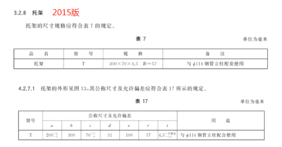 g) 更 改 了 托 架 的 用 途 、规 格 和 公 称 尺 寸 及 允 许 偏 差(见 4.3.6、5.2.6.1,2015 年 版 的 3.2.8、4.2.7.1);