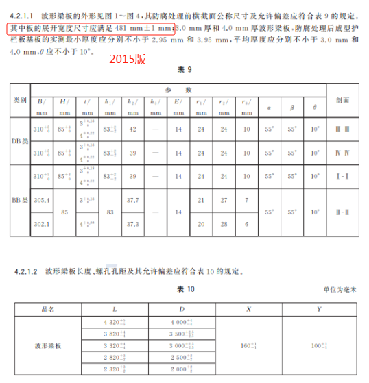 k) 更改了两波形梁板外形图、横截面公称尺寸、展开尺寸及允许偏差(见 5.2.1.1~5.2.1.3,2015 版的 4.2.1.1、4.2.1.2);
