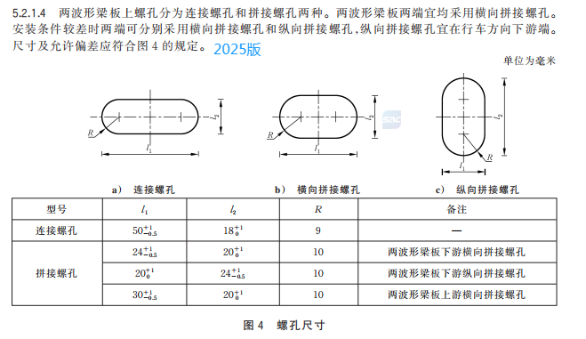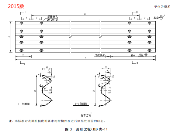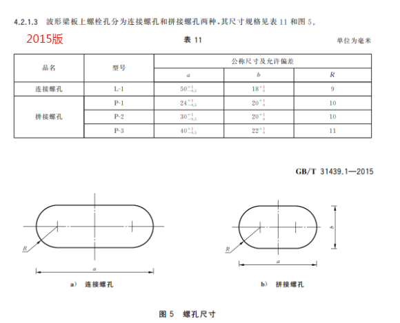 m) 更改了两波形梁板螺孔规格(见 5.2.1.4,2015 年版的 4.2.1.3);