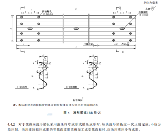 l) 删除了变截面两波形梁板的外形图及加工要求(见 2015 年版的图 3、图 4 和 4.4.2);
