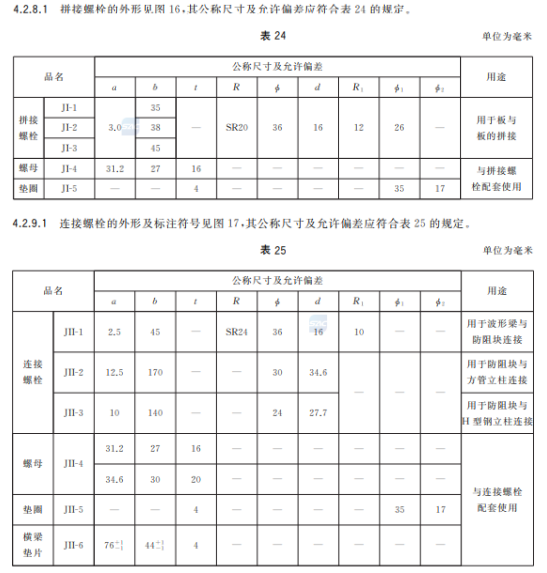 j) 更改了拼接螺栓连接副和连接螺栓连接副的用途、规格、公称尺寸及允许偏差(见4.3.8、4.3.9、5.2.8.1、5.2.8.3、5.2.9.1和5.2.9.3,2015年版的3.3.8、3.3.9、4.2.8.1和4.2.9.1);